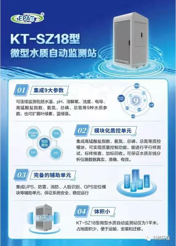KT-SZ18型微型水质自动监测站仅为1平米,占地面积少,便于运输、安装和迁移。